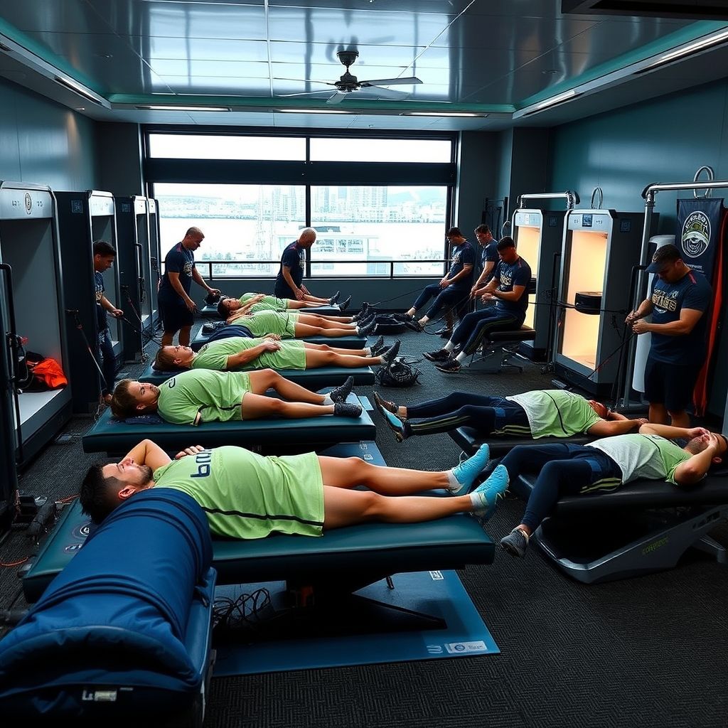 除了传统的恢复方法,西雅图海湾者还采用了一些创新的恢复手段。例如,冷疗和高压氧疗法已经成为球员恢复计划的一部分。冷疗能够帮助球员迅速缓解运动后的肌肉疲劳,并促进血液循环。而高压氧疗法则有助于加速身体的代谢,帮助球员更快地排除体内的乳酸,减少运动后的不适感。这些高科技的恢复手段,不仅提高了球员们的恢复效率,也为他们的体能储备提供了更加科学的支持。